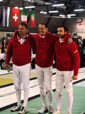 La Asociación Española de Veteranos de Esgrima felicita al equipo de sable masculino, compuesto por Marc Andreu, Pedro Gascón, Javier López, Adolfo Maldonado y Juan Rey, por su medalla de oro en el Campeonato de Europa de Veteranos por equipos disputado del 25 al29 de mayo en Hamburgo, Alemania.